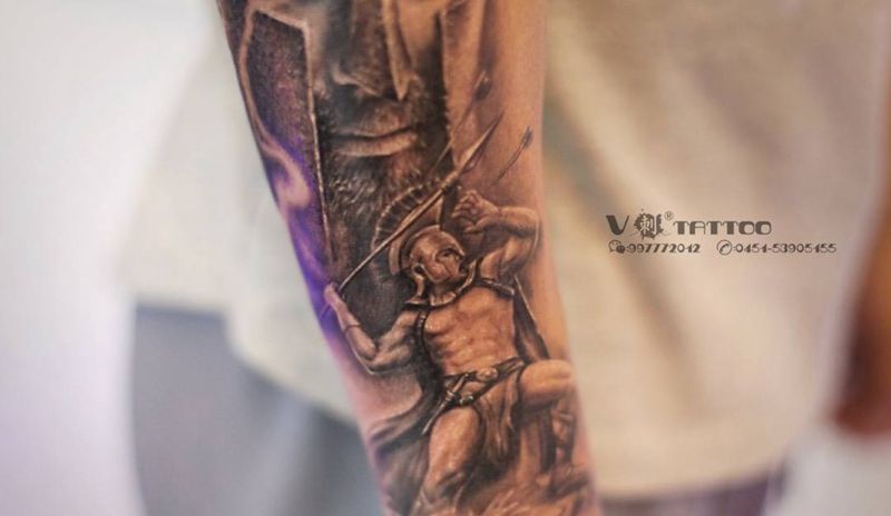 向抗洪抢险三等功军人致敬! Tattoo by 阿V纹身图片_手臂欧美写实斯巴达肖像写实纹身图案