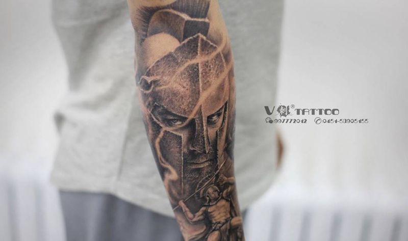 向抗洪抢险三等功军人致敬! Tattoo by 阿V纹身图片_手臂欧美写实斯巴达肖像写实纹身图案