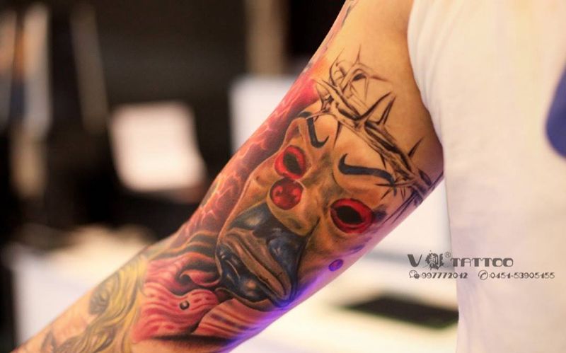 当前位置: 首页 >黑龙江省哈尔滨市纹身店-V刺tattoo纹身图案>欧美花臂未完成…纹身图片_手臂欧美写实小丑欧美花臂上帝之眼纹身图案