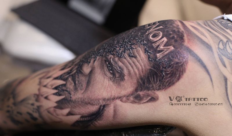 毒液!by阿V纹身图片_手臂欧美写实毒液欧美肖像纹身图案