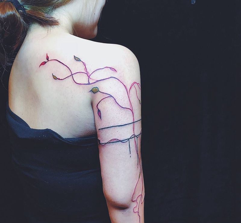 当前位置: 首页 >黑龙江省哈尔滨市纹身店-JD.tattoo纹身图案>•Cane vine纹身图片_手稿插画成品肩部手臂清新植物纹身图案