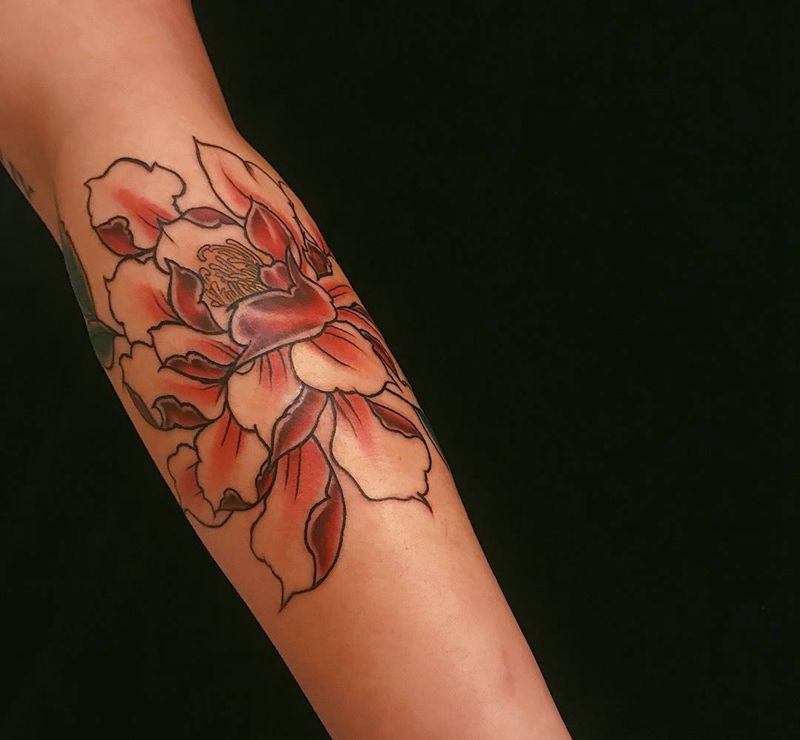 当前位置: 首页 >黑龙江省哈尔滨市纹身店-JD.tattoo纹身图案>牡丹纹身图片_成品手臂传统植物纹身图案