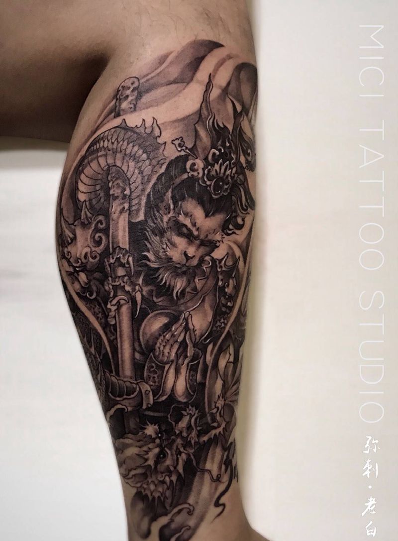 当前位置: 首页 >黑龙江省哈尔滨市纹身店-哈尔滨弥刺纹身工坊纹身图案>悟空纹身图片_哈尔滨弥刺孙悟空大圣腿部纹身图案