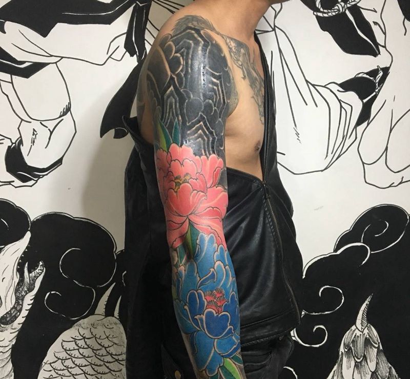 当前位置: 首页 >黑龙江省哈尔滨市纹身店-喜禾tattoo工作室纹身图案>老传统牡丹花臂遮盖纹身图片