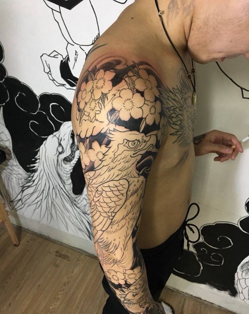 • 纹身吧推荐的披肩图腾半胛纹身图案作品展示