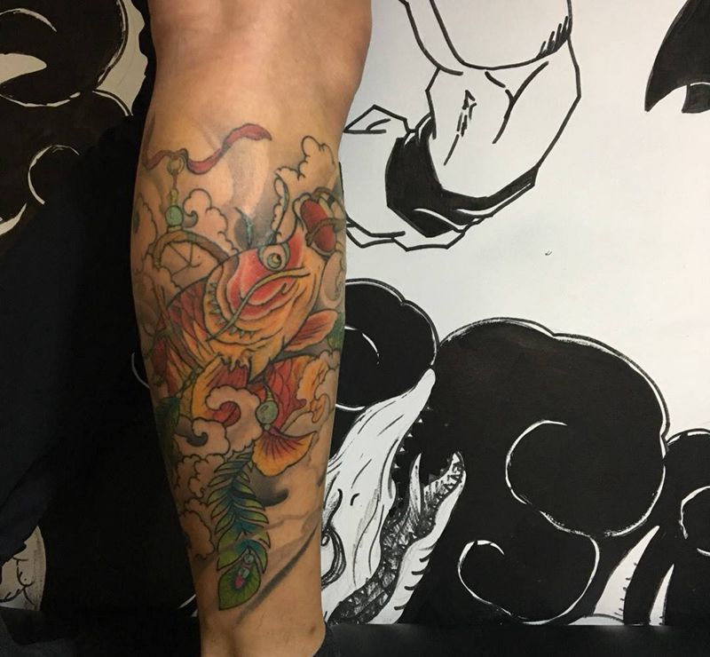 当前位置: 首页 >黑龙江省哈尔滨市纹身店-喜禾tattoo工作室纹身图案>捕梦网鲤鱼旗纹身图片