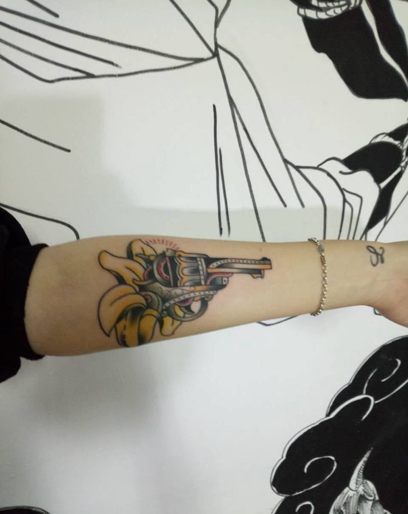 当前位置: 首页 >黑龙江省哈尔滨市纹身店-喜禾tattoo工作室纹身图案>香蕉枪纹身图片_手臂old school漂亮小妹妹纹身图案