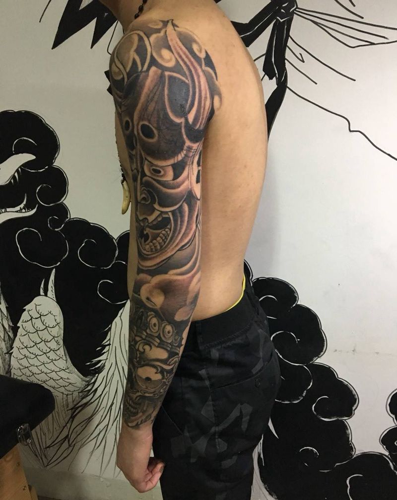 当前位置: 首页 >黑龙江省哈尔滨市纹身店-喜禾tattoo工作室纹身图案>般若噶不拉花臂纹身图片_传统成品手臂纹身图案