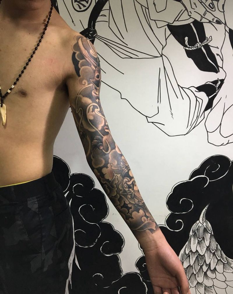 当前位置: 首页 >黑龙江省哈尔滨市纹身店-喜禾tattoo工作室纹身图案>般若噶不拉花臂纹身图片_传统成品手臂纹身图案