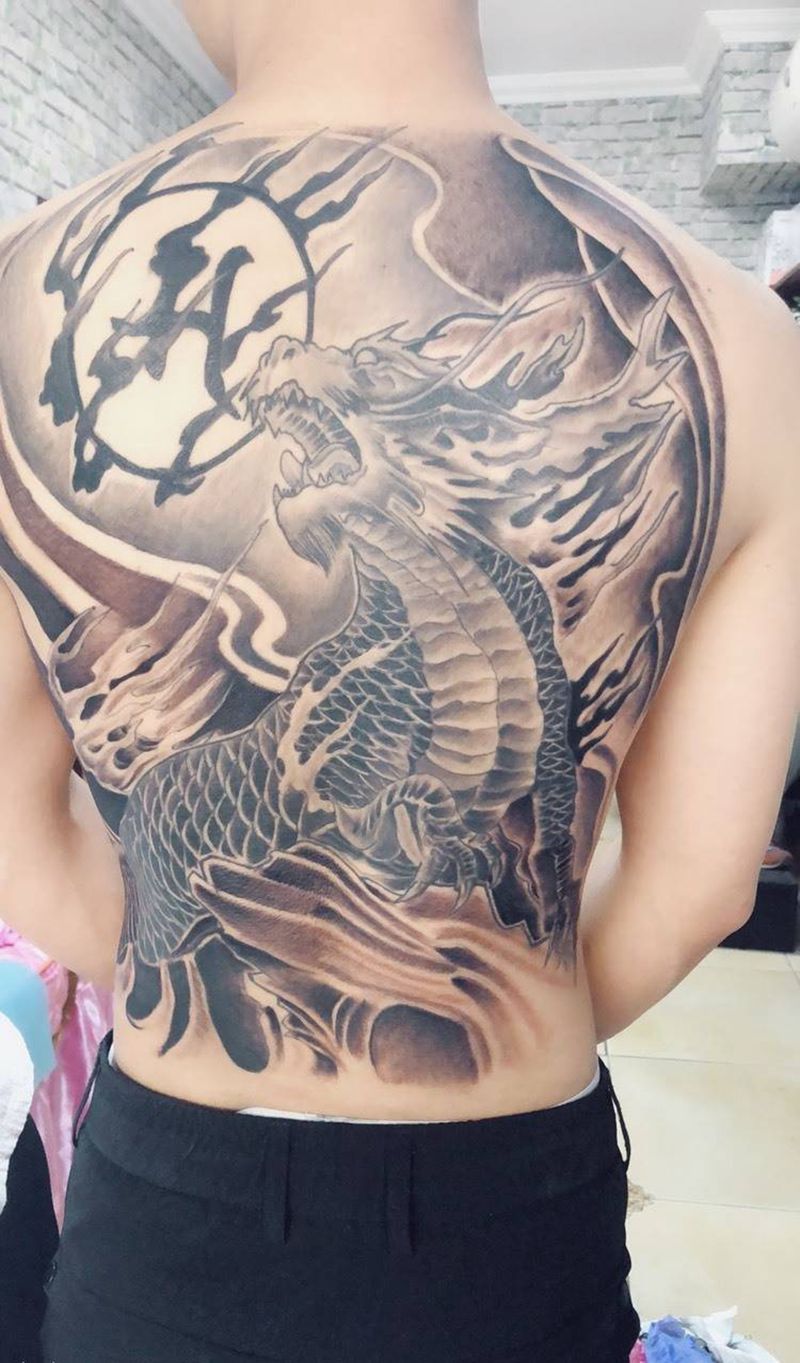 • T云龙九郎纹身图片_背部老传统云龙九郎纹身图案