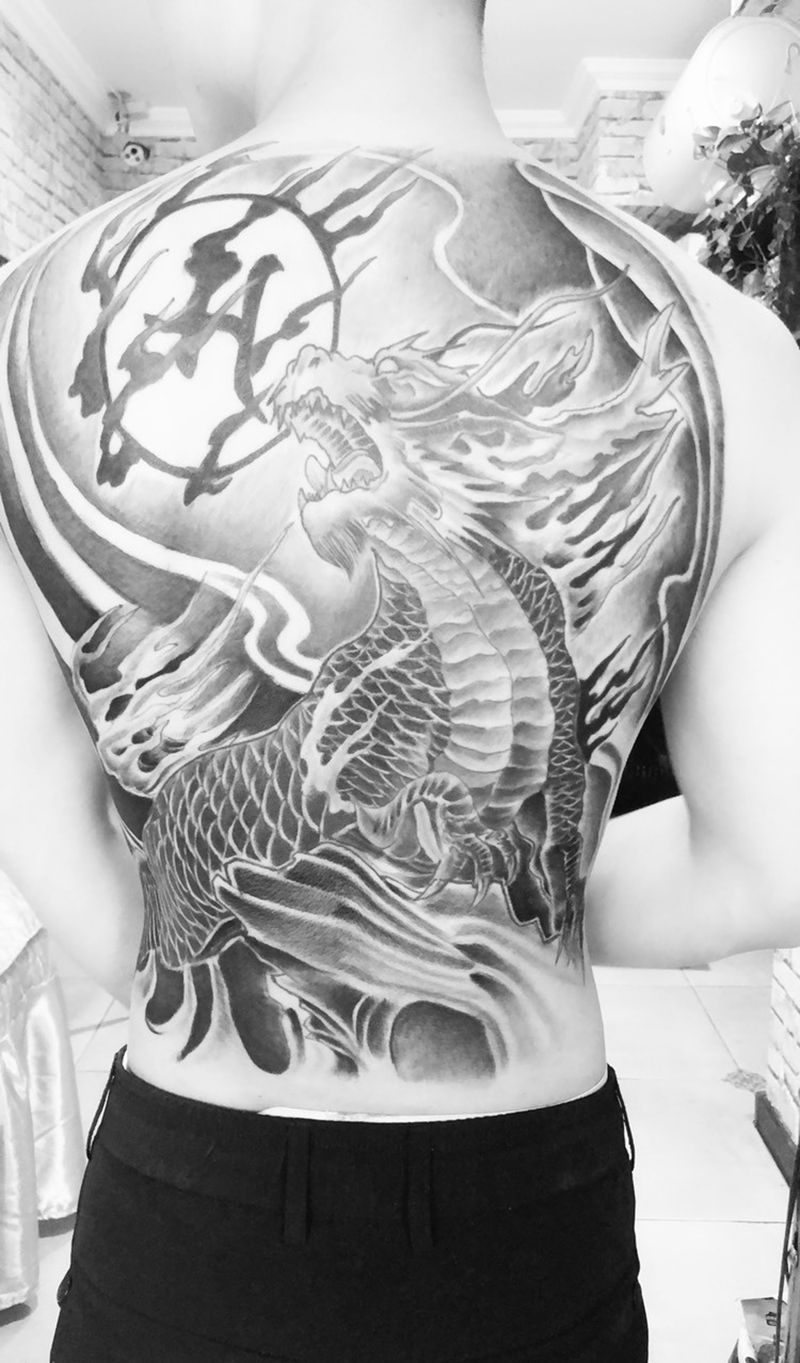 黑灰满背纹身图案