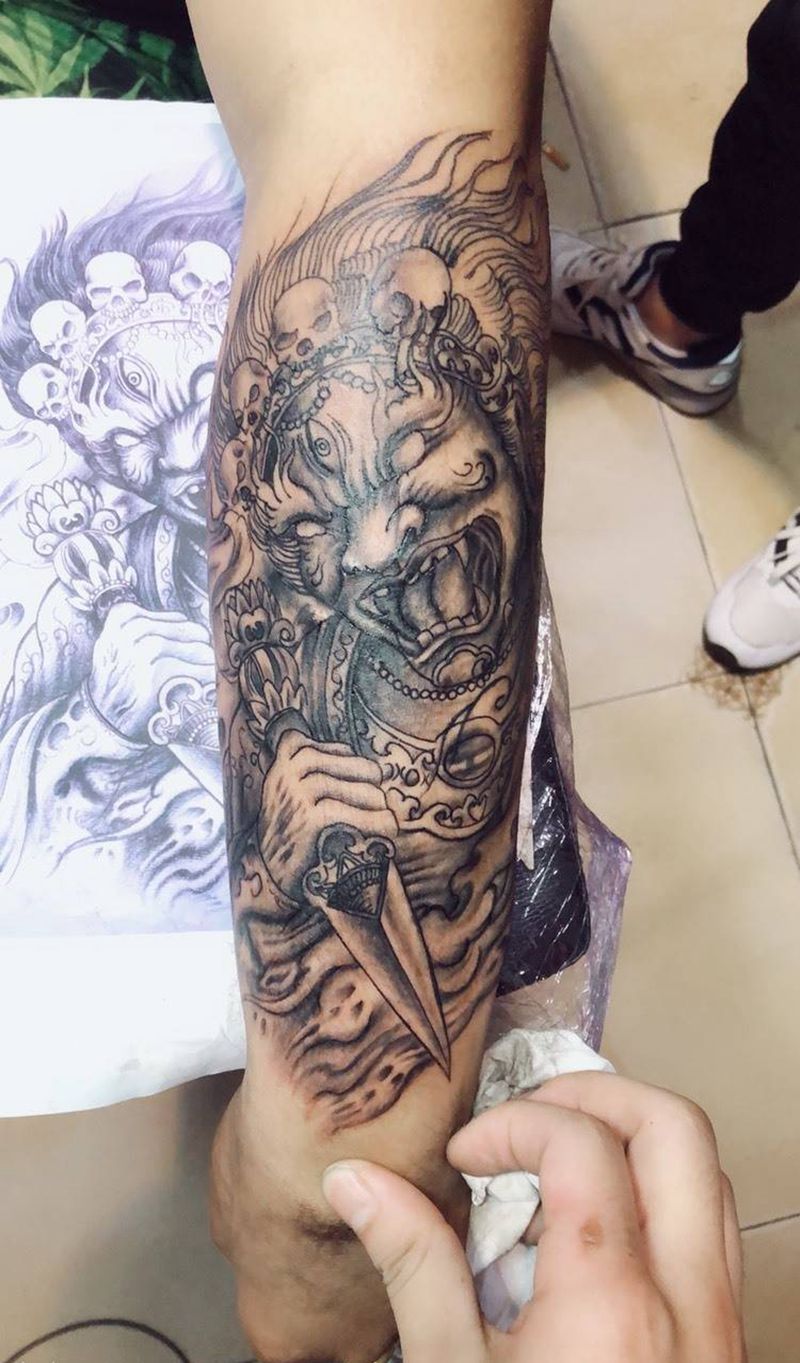 当前位置: 首页 >黑龙江省哈尔滨市纹身店-铭聚刺青纹身图案>小臂完成纹身图片