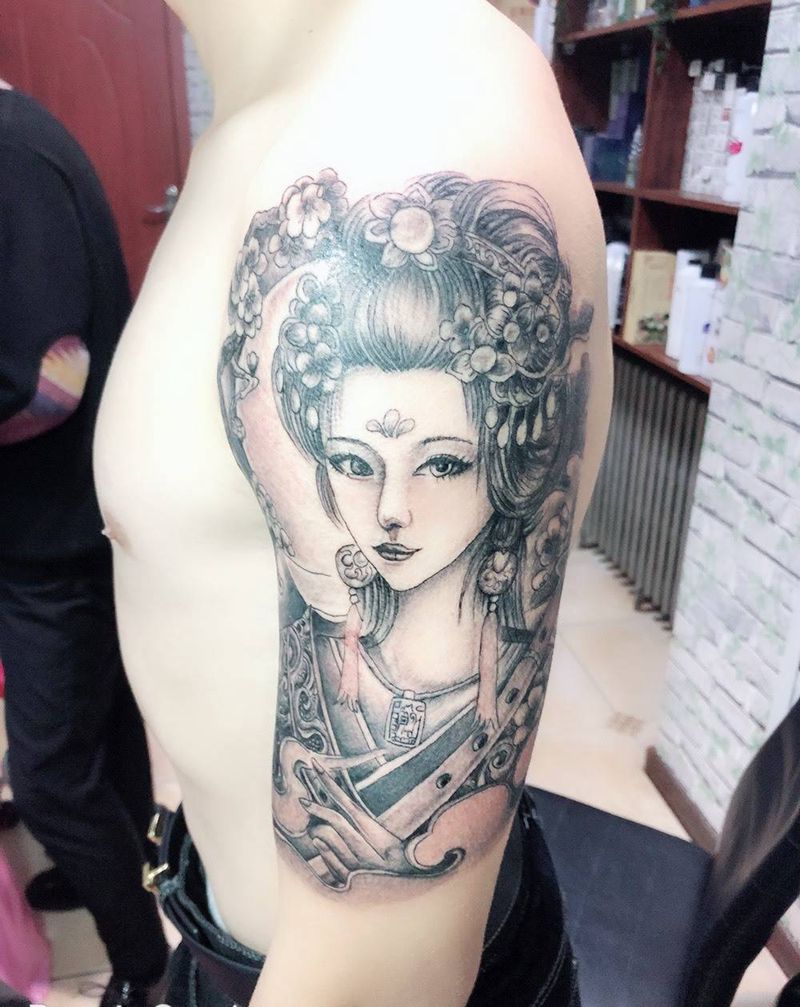 当前位置: 首页 >黑龙江省哈尔滨市纹身店-铭聚刺青纹身图案>大臂艺妓纹身图片