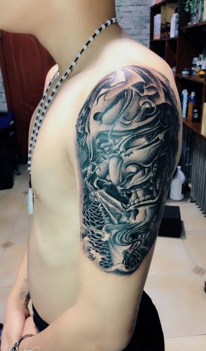 当前位置: 首页 >黑龙江省哈尔滨市纹身店-铭聚刺青纹身图案>大臂般若完成纹身图片