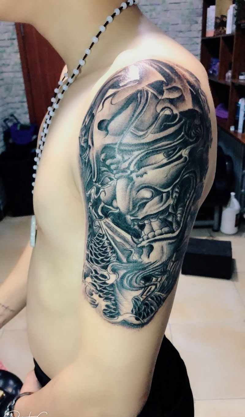 当前位置: 首页 >黑龙江省哈尔滨市纹身店-铭聚刺青纹身图案>大臂般若完成纹身图片