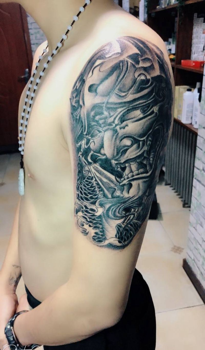 当前位置: 首页 >黑龙江省哈尔滨市纹身店-铭聚刺青纹身图案>大臂般若完成纹身图片