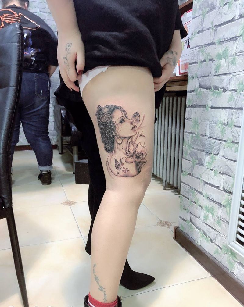 大腿艺妓纹身图片