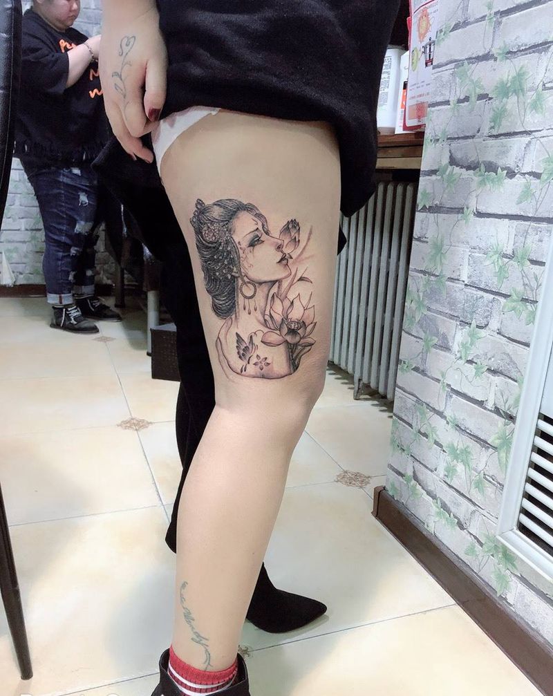 大腿艺妓纹身图片