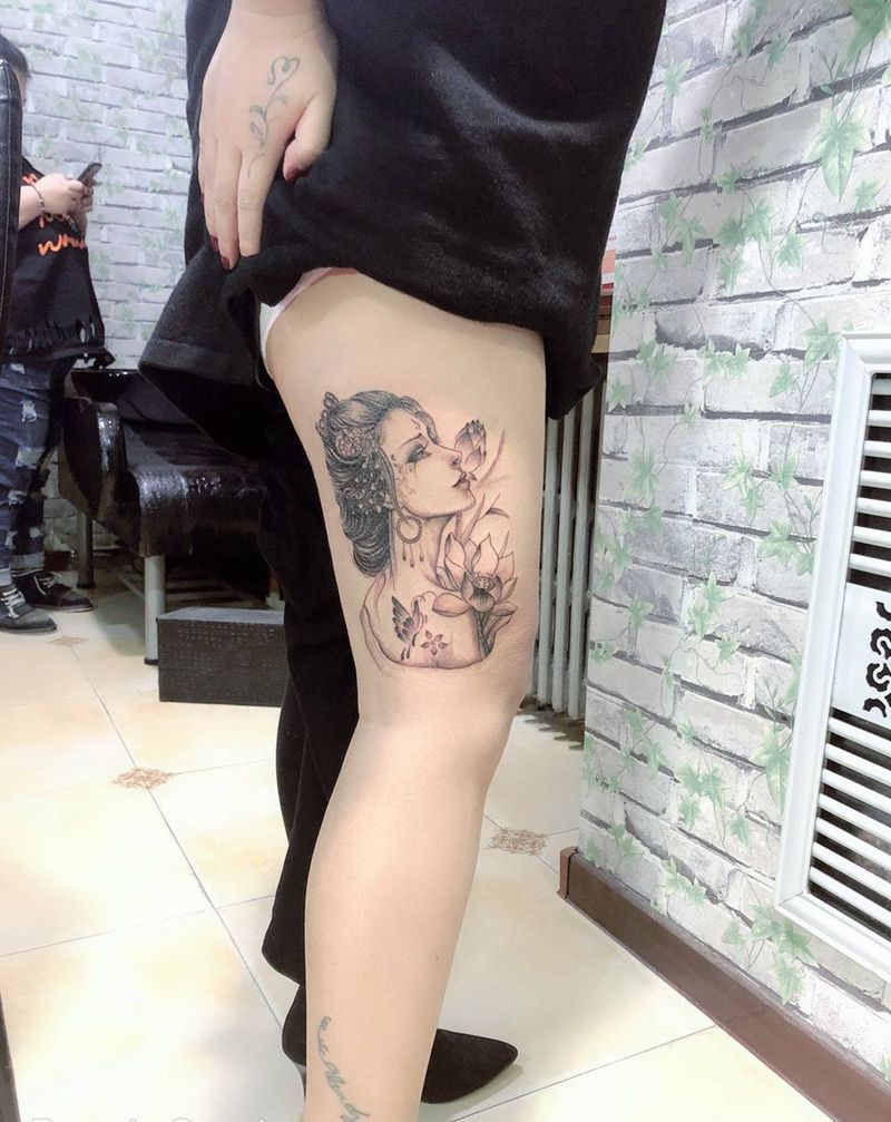 当前位置: 首页 >黑龙江省哈尔滨市纹身店-铭聚刺青纹身图案>大腿艺妓纹身图片