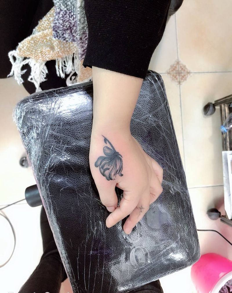• 手背潮流时尚的玫瑰花眼睛纹身图案