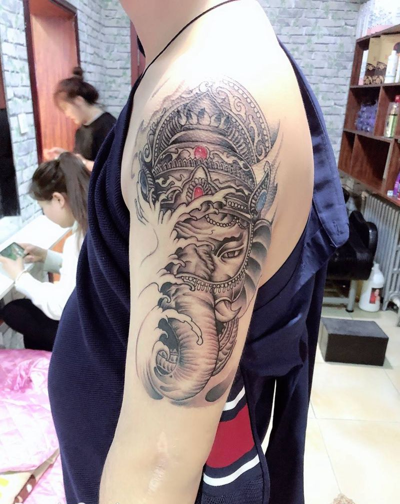 当前位置: 首页 >黑龙江省哈尔滨市纹身店-铭聚刺青纹身图案>大臂象神纹身图片