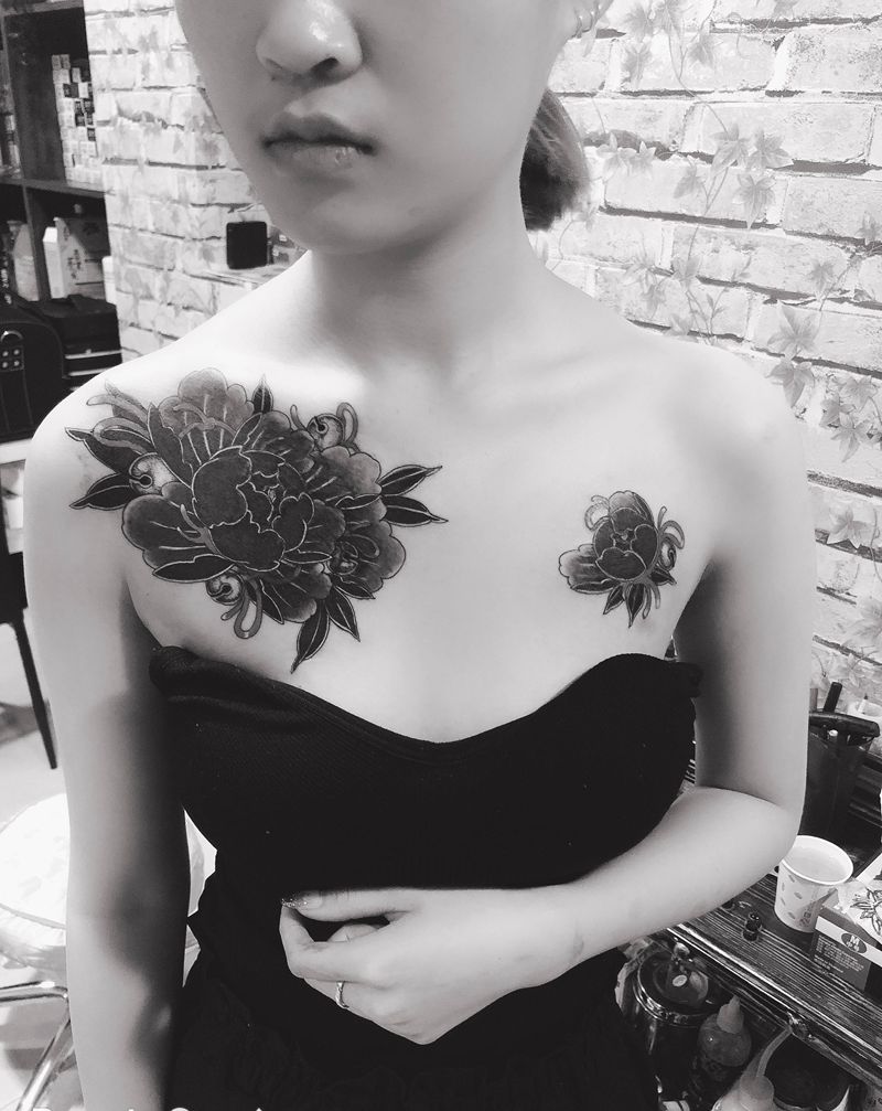• 女性大花胸纹身_43张霸气漂亮的女性大花胸纹身图案作品