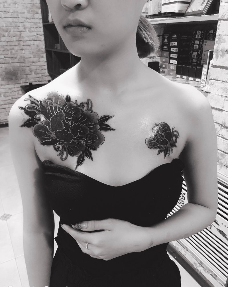 • 女性大花胸纹身_43张霸气漂亮的女性大花胸纹身图案作品