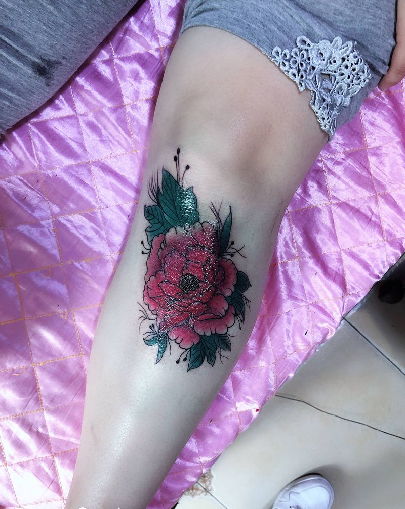 遮盖伤疤纹身图片_腿部水彩纹身图案