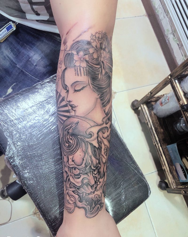 当前位置: 首页 >黑龙江省哈尔滨市纹身店-铭聚刺青纹身图案>艺妓纹身图片_手臂新传统纹身图案