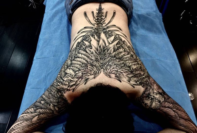 当前位置: 首页 >黑龙江省哈尔滨市纹身店-V刺tattoo纹身图案>脊翅纹身图片_肩部背部酷炫 线条几何翅膀纹身图案