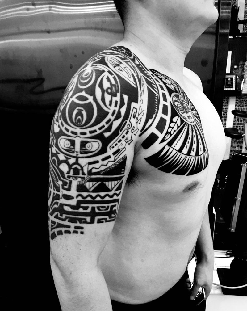 • 纹身吧推荐的披肩图腾半胛纹身图案作品展示