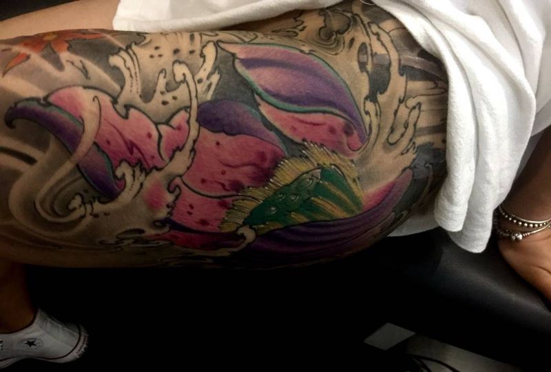 • T网红王老大花腿龙纹身图片_腿部新传统纹身图案