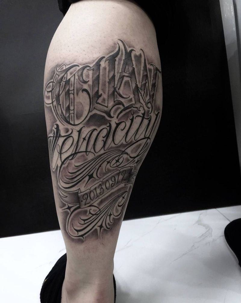当前位置: 首页 >黑龙江省哈尔滨市纹身店-V刺tattoo纹身图案>爆腿纹身图片_成品手稿腿部酷炫 school花体字旅行原创纹身图案