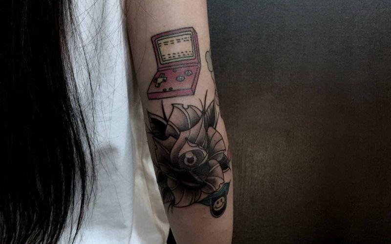当前位置: 首页 >黑龙江省哈尔滨市纹身店-V刺tattoo纹身图案>肘花纹身图片_成品手臂欧美school酷炫 线条原创纹身图案