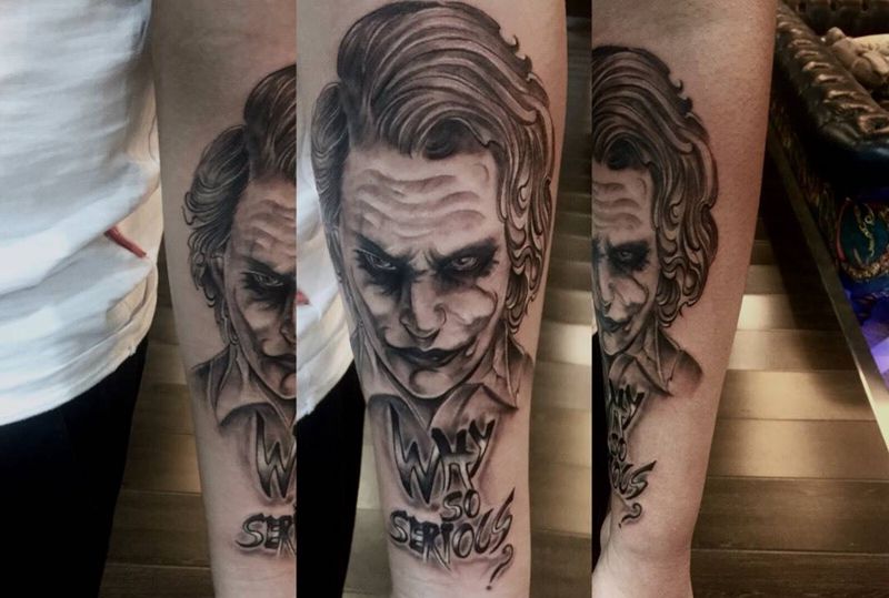 • T包小腿吹火男+阿多福纹身图片_腿部老传统新传统吹火男阿