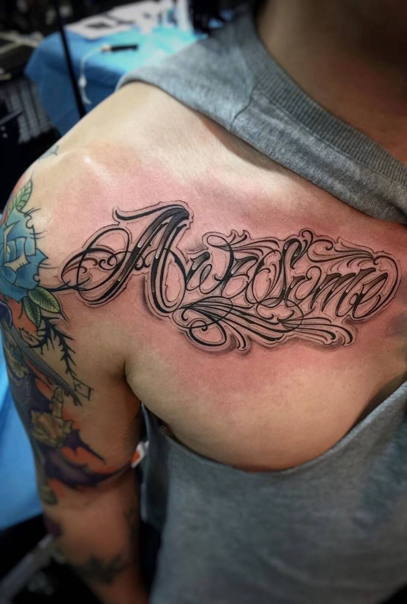花体字纹身图片_成品手部手臂旅行花体字school线条酷炫 原创纹身图案