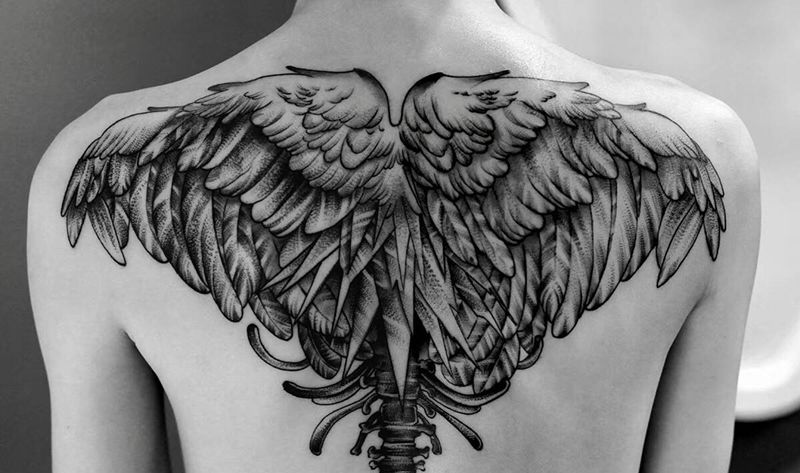我曾踏月而行,只因你在山中(未纹身图片_肩部点刺翅膀纹身图案
