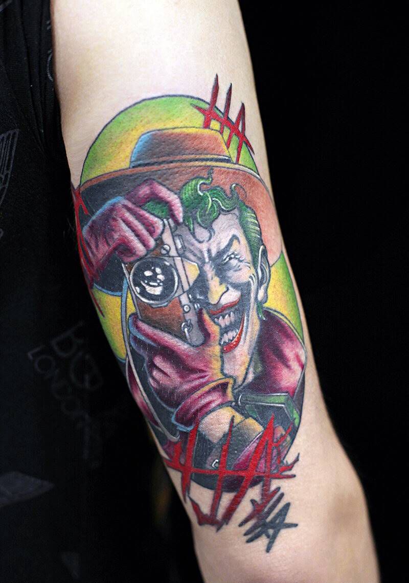 当前位置: 首页 >黑龙江省哈尔滨市纹身店-V刺tattoo纹身图案>school小丑纹身图片_手臂New School纹身图案