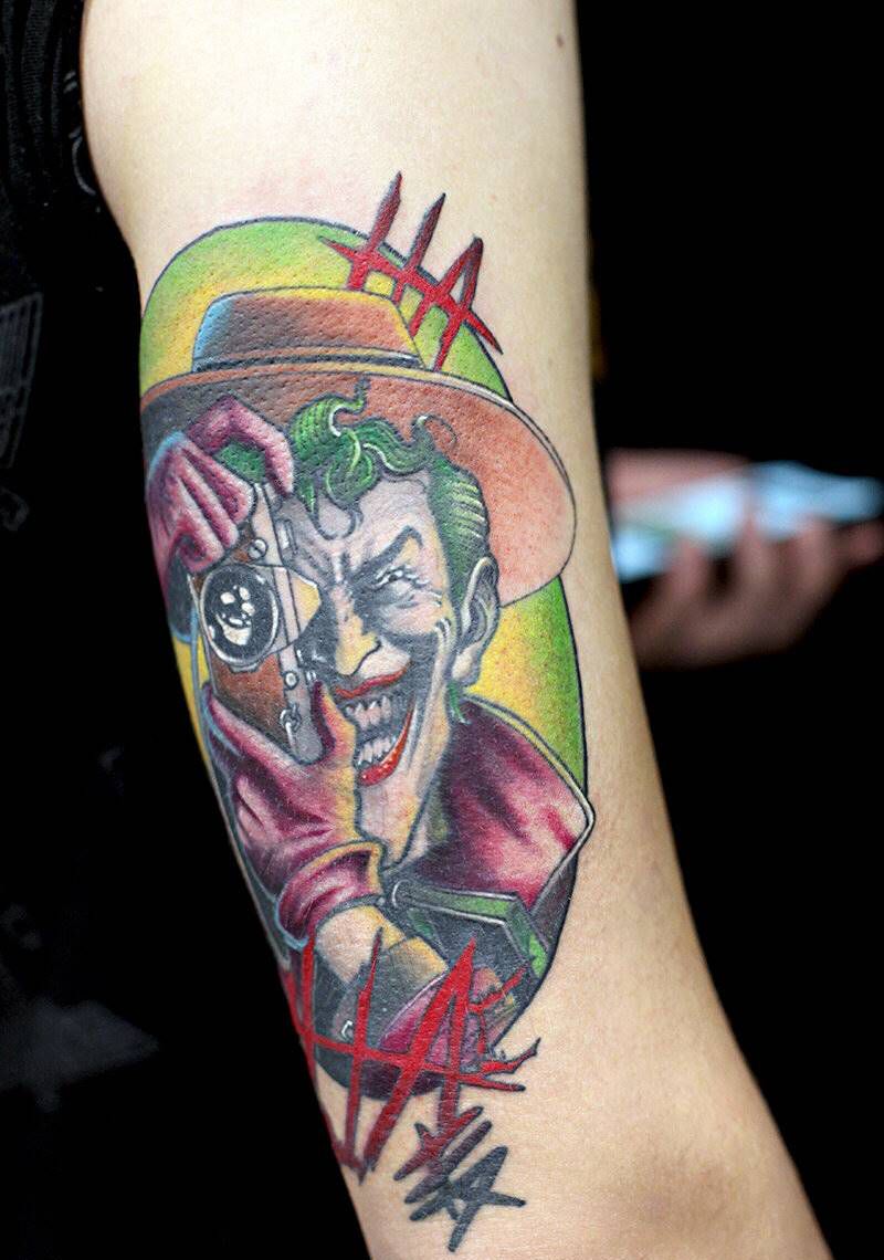 当前位置: 首页 >黑龙江省哈尔滨市纹身店-V刺tattoo纹身图案>school小丑纹身图片_手臂New School纹身图案