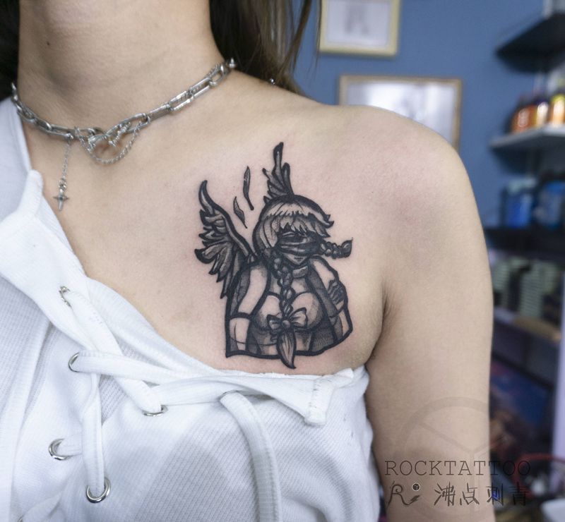 • 纹身吧推荐的披肩图腾半胛纹身图案作品展示