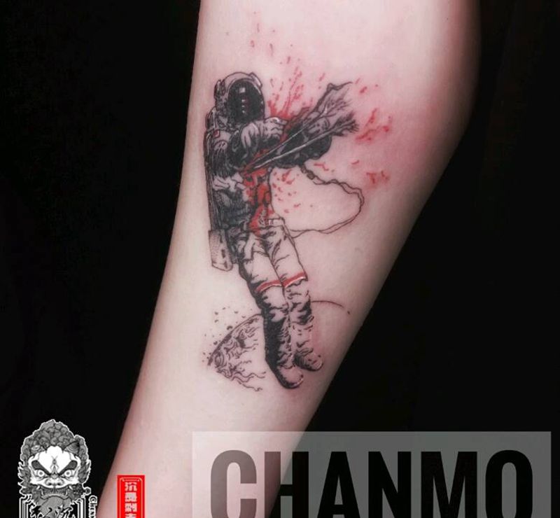 受伤的宇航员-嬴姬作品纹身图片_手臂清新人物成品纹身图案