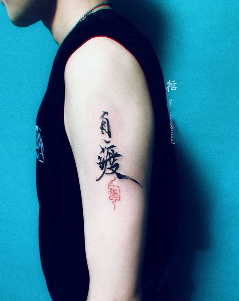当前位置: 首页 >黑龙江省哈尔滨市纹身店-Z tattoo哲刺青纹身图案>书法字体自渡纹身图片_手臂水墨新传统纹身图案