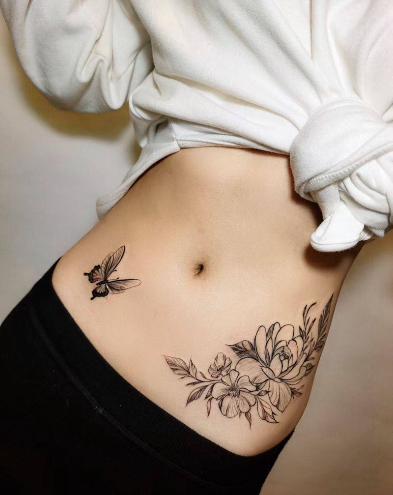 • 时尚性感的腹部莲花纹身图案