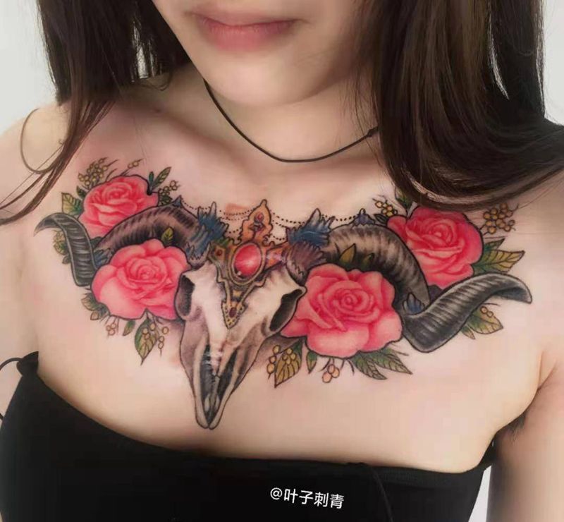 • 女性大花胸纹身_43张霸气漂亮的女性大花胸纹身图案作品