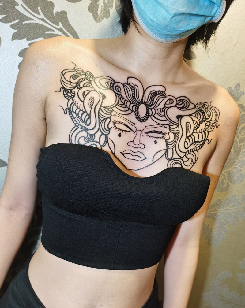 美杜莎纹身图片_胸部纹身图案