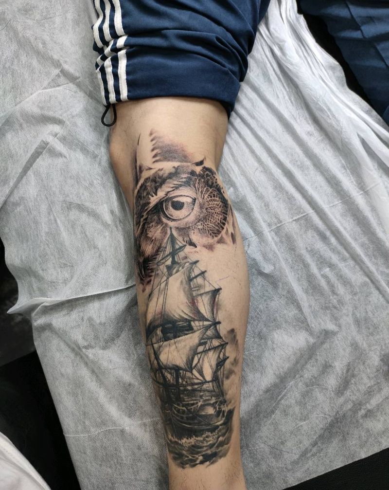 猫头鹰添加纹身图片_腿部欧美写实纹身图案