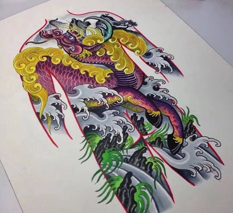 • T网红王老大花腿龙纹身图片_腿部新传统纹身图案