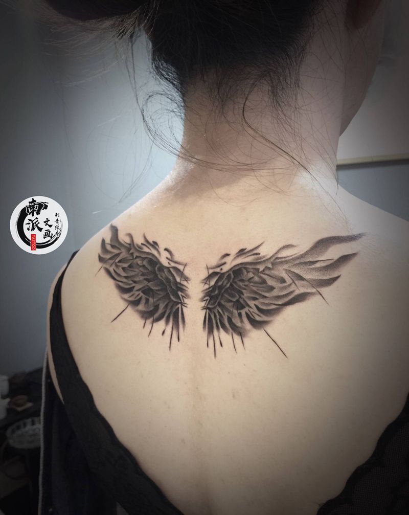 当前位置: 首页 >黑龙江省哈尔滨市纹身店-南派文画刺青纹身图案>翅膀纹身图片_背部水墨纹身图案