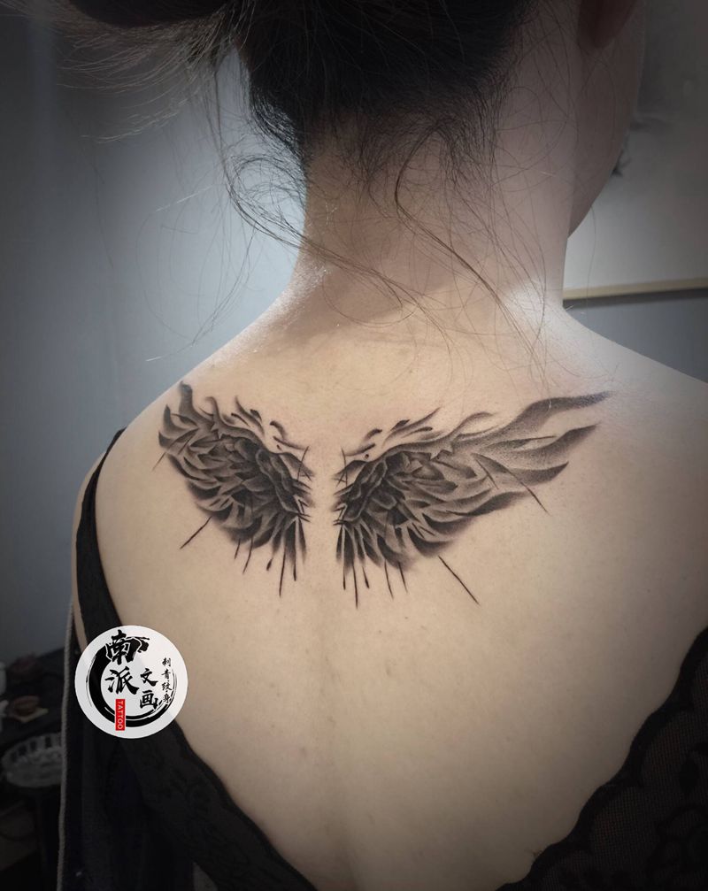 当前位置: 首页 >黑龙江省哈尔滨市纹身店-南派文画刺青纹身图案>翅膀纹身图片_背部水墨纹身图案