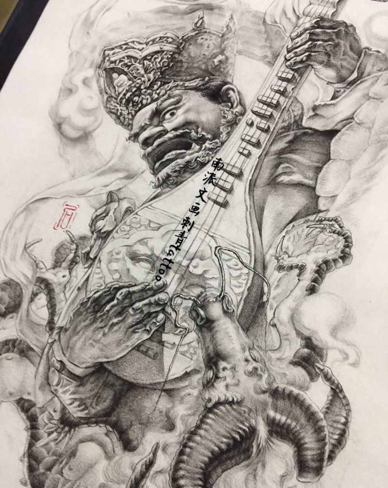 当前位置: 首页 >黑龙江省哈尔滨市纹身店-南派文画刺青纹身图案>东方持国天王纹身图片